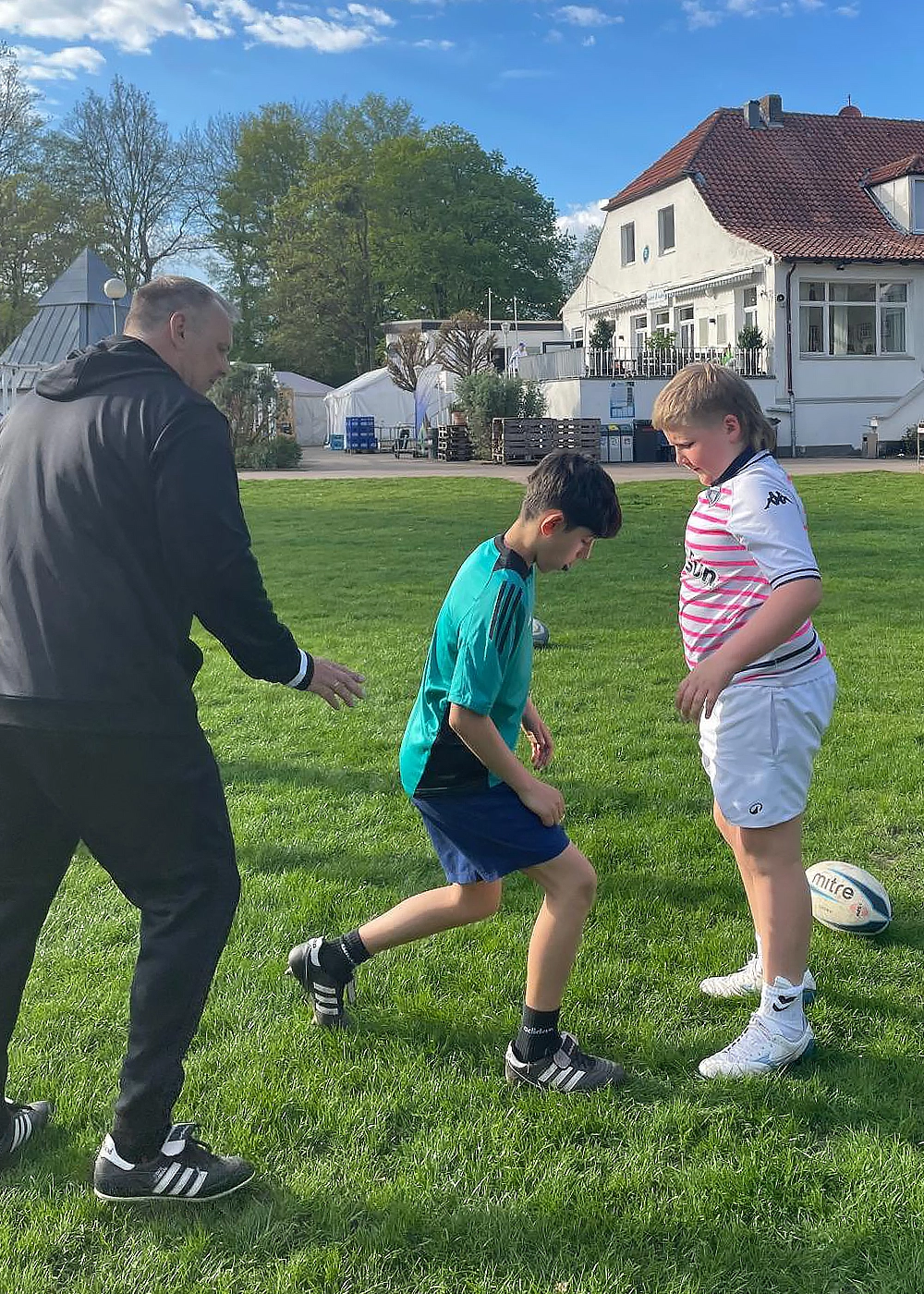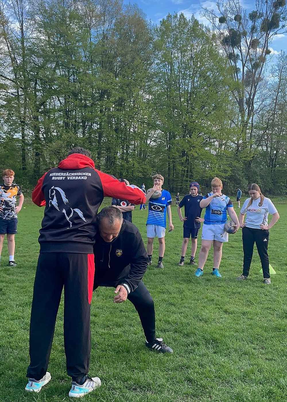 Unter Anleitung vom Landestrainer Christian Doering und dem ehemaligen National- und Bundesligatrainer Rainer Kumm wurden – zunächst in einer spielerischen Form – die Grundlagen des richtigen Tacklings vermittelt.